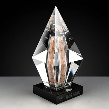 Shining New Style Unique Transparent Crystal Trophy With Colorful Stone Inside Souvenir Gift Home Decoration