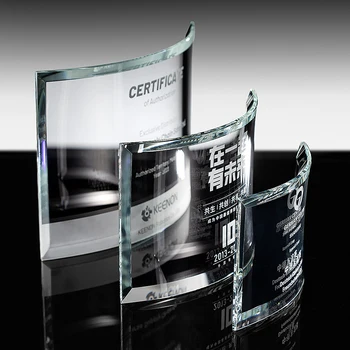 Customized Crystal Glass Trophy Curved Glass Plaque for Souvenir Gift